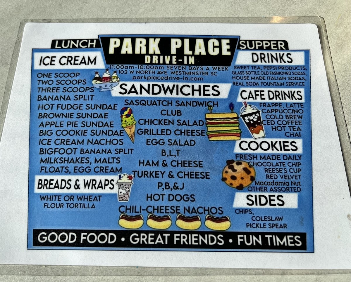Hot dog with options for fountain drinks including Pepsi varieties, Mountain Dew, Dr. Pepper, Root Beer, Orange Crush. Choose from an assortment of chips or extra slaw cup as a side.